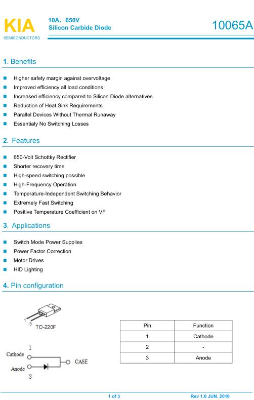 KSF10065A 10A/650V PDF資料及現(xiàn)貨供應(yīng)廠家-KIA MOS管