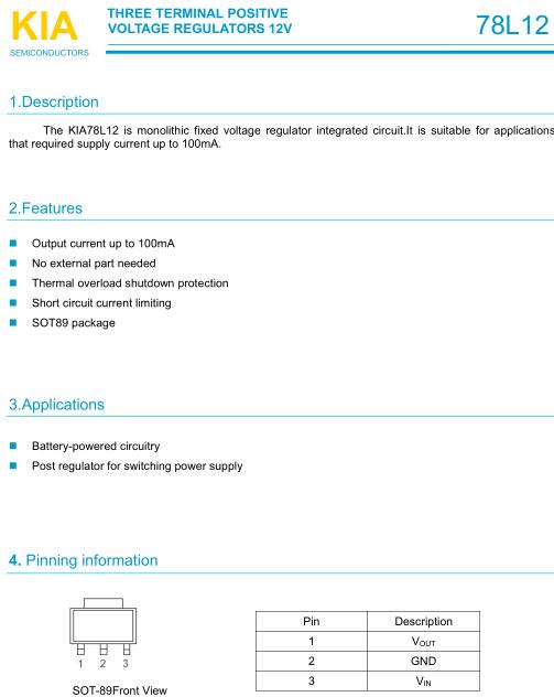 三端穩壓管-三端穩壓管7812中文資料及穩壓電源電路圖 引腳圖-KIA MOS管