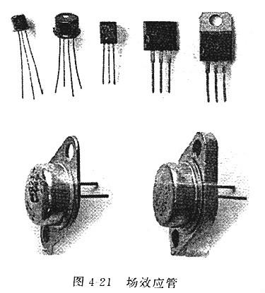 場效應晶體管通常簡稱為場效應管,是一種應用場效應原理工作的半導體器件,外形如圖4-21所示。和普通雙極型晶體管相比擬,場效應管具有輸入阻抗高、噪聲低、動態范圍大、功耗小、易于集成等特性,得到了越來越普遍的應用。