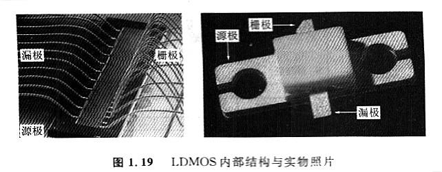 槽柵構(gòu)造有利于進步電流控制才能,但是結(jié)電容大,不利于工作頻率的提高。將平而柵極構(gòu)造與雙擴散有機分離起來,就LDMOS(Lateral DoubleDiffuse MOSFET,橫向雙擴散MOSFET)(圖1.18)。