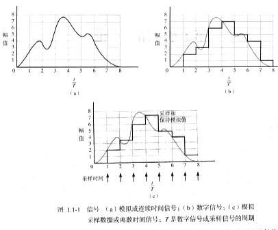 模仿集成電路中還會遇到另一種信號,即模仿采樣數(shù)據(jù)信號。模仿采樣數(shù)據(jù)信號是指在連續(xù)幅值范圍內僅在時間離散點上有定義的信號。通常,采樣模仿信號堅持的是采樣周期完畢時的值,構成的是采樣堅持信號。模仿采樣堅持信號如圖1.1-1( c)所示。