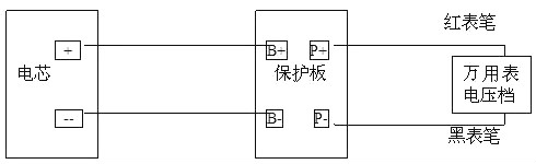 電芯接到保護板B+、B-上,用鑷子或錫線短接B-、P-,再短接P+、P-;短路后用萬用表測保護板開路電壓(如下圖所示);反復短接3-5次,此時萬用表讀數應與電芯一致,保護板應無冒煙、爆裂等現象。