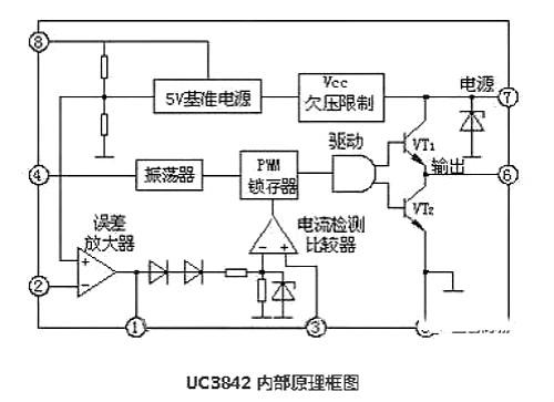 UC3842是一種性能優異、應用廣泛、結構較簡單的PWM開關電源集成控制器,由于它只有一個輸出端,所以主要用于音端控制的開關電源。