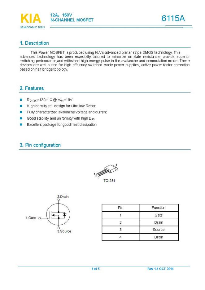 參數: ID(A): 12 BVDSS(V): 150 RDS(ON): 0.16 Qg(nC): 19 Package: TO-251