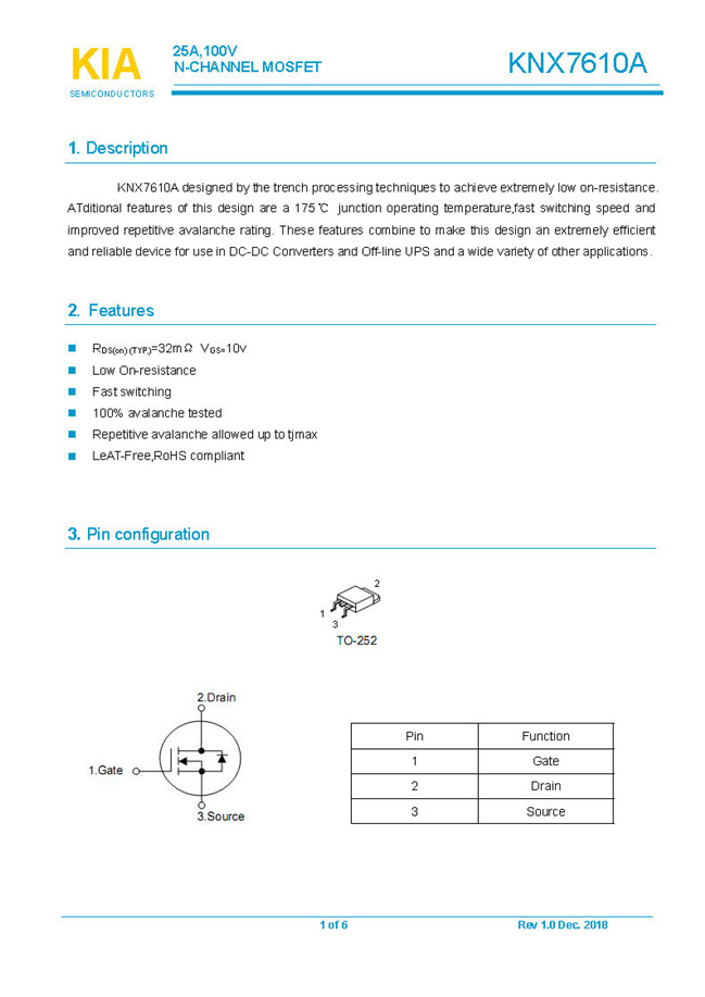 參數(shù): ID(A): 25 BVDSS(V): 100 RDS(ON): 32mΩ Qg(nC): 55 Package: TO-252