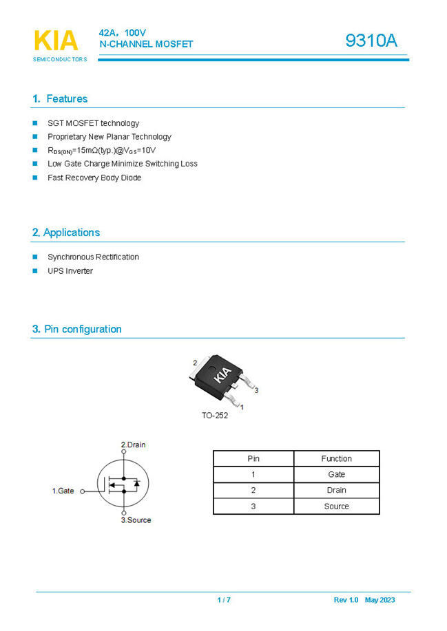 參數(shù): ID(A): 42 BVDSS(V): 100 RDS(ON): 15mΩ Qg(nC): 20 Package: TO-252