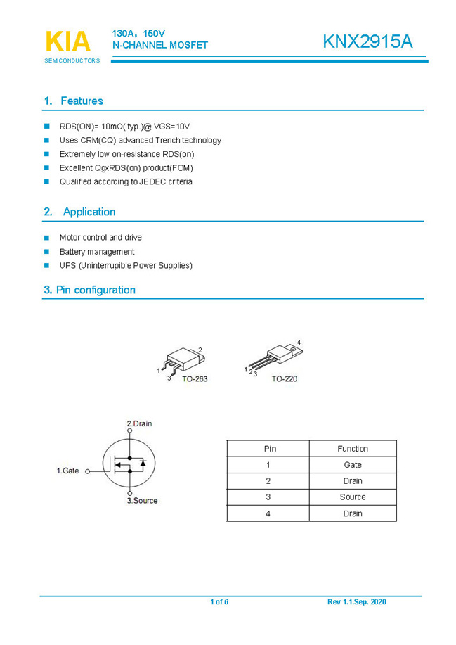 參數: ID(A): 130 BVDSS(V): 150 RDS(ON): 10mΩ Qg(nC): 70 Package: TO-220.TO-263