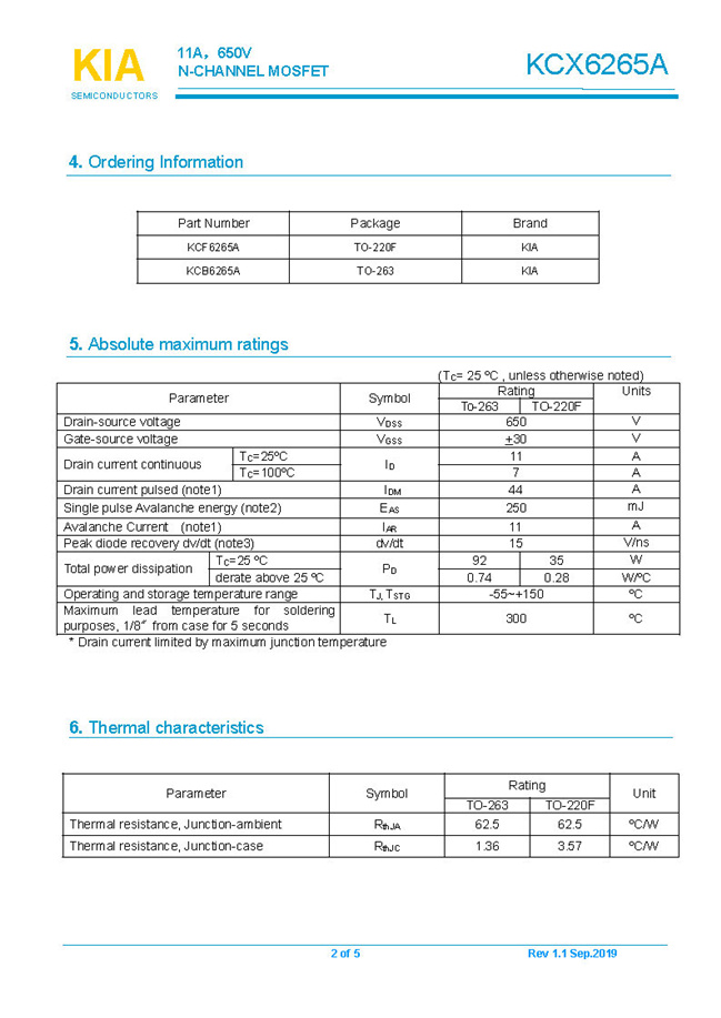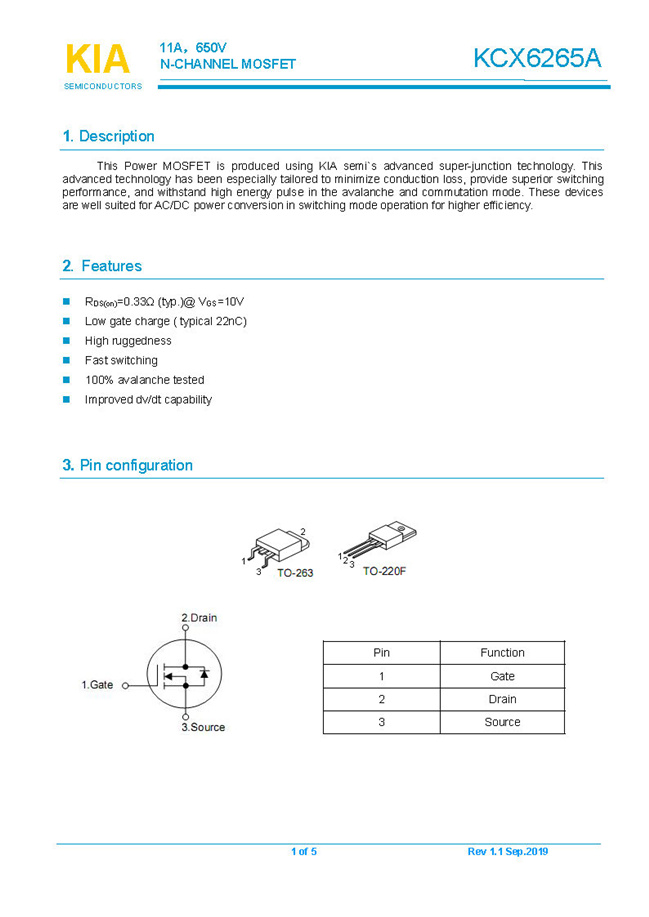 參數: ID(A): 11 BVDSS(V): 650 RDS(ON): 0.33Ω Qg(nC): 22 Package: TO-263、220F